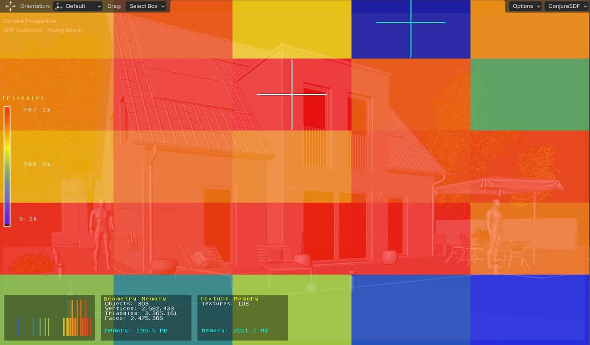 Jeder Bereich des Viewports wird analysiert und nach seiner geschätzten Rechenlast eingefärbt.